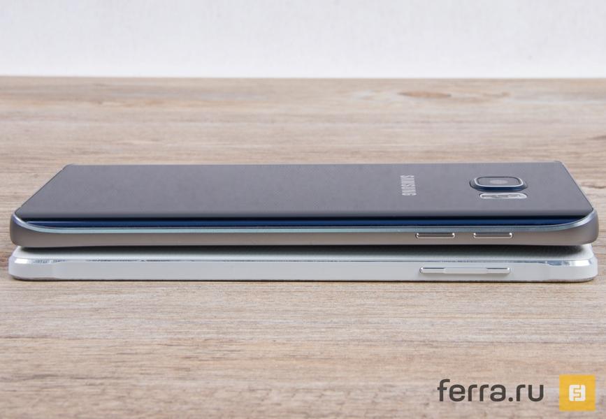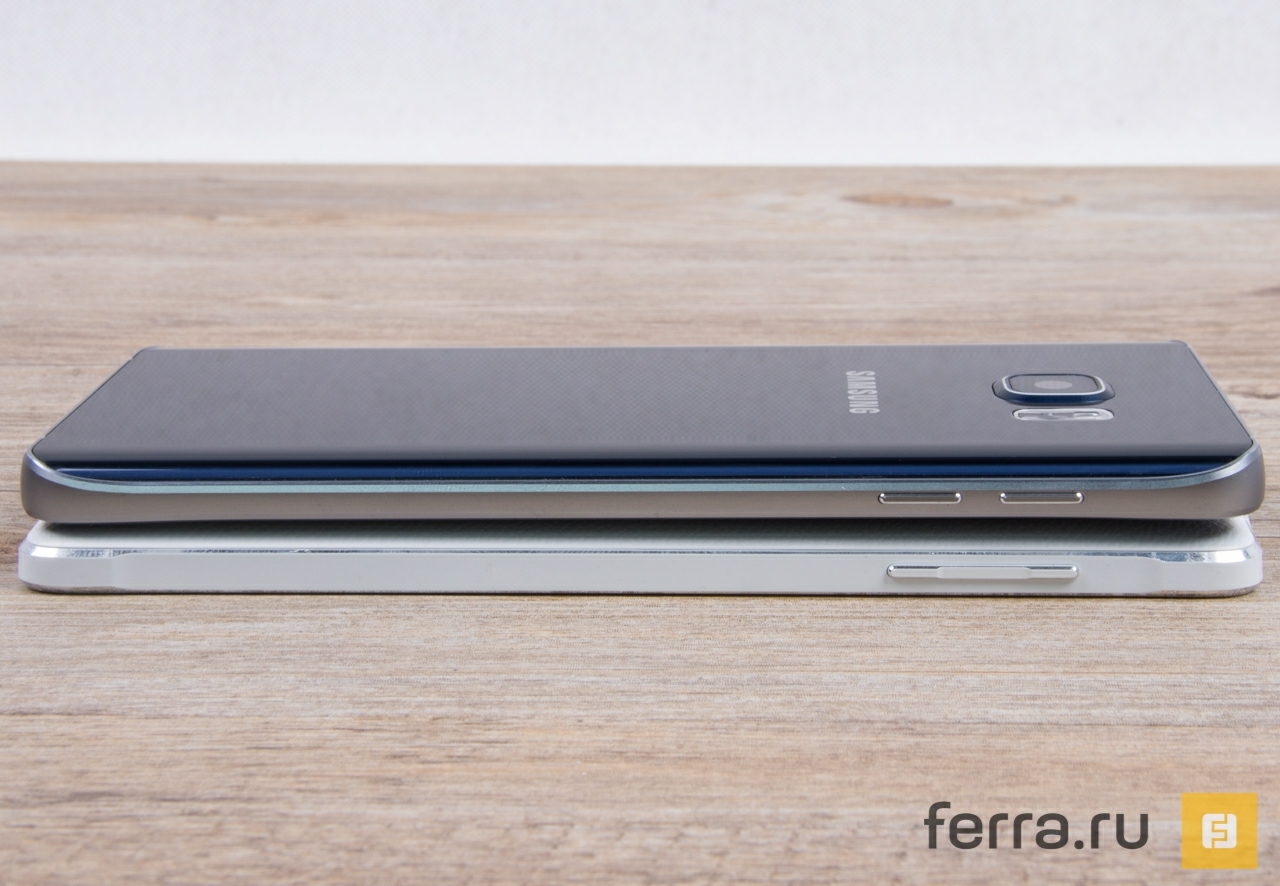 Но это лирика, а теперь по делу. Новый Note стал заметно уже и тоньше предшественника. С учётом микроскопических боковых рамок габариты смартфона скорее соответствуют 5,5-дюймовым фаблетам, а не «бескомпромиссной лиге» моделей с околопланшетными размерами экрана и габаритами. Правда, следует признать, что S6 edge+ за счёт безрамочной конструкции всё равно воспринимается более миниатюрной моделью.