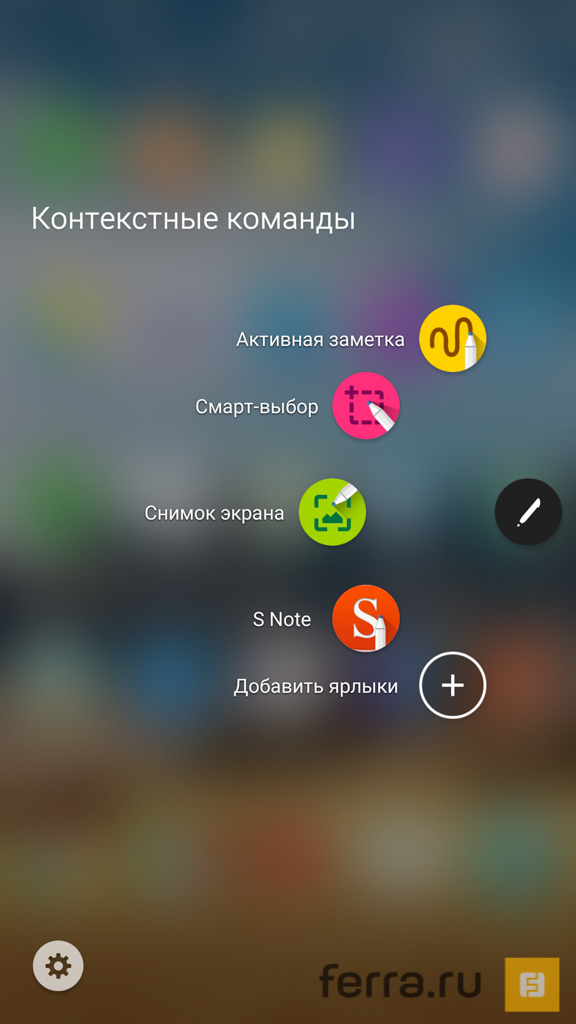 Вызывать специальные команды для стилуса можно нажатием клавиши на нём или после нажатия на малозаметный круг с раскрывающимися элементами.
