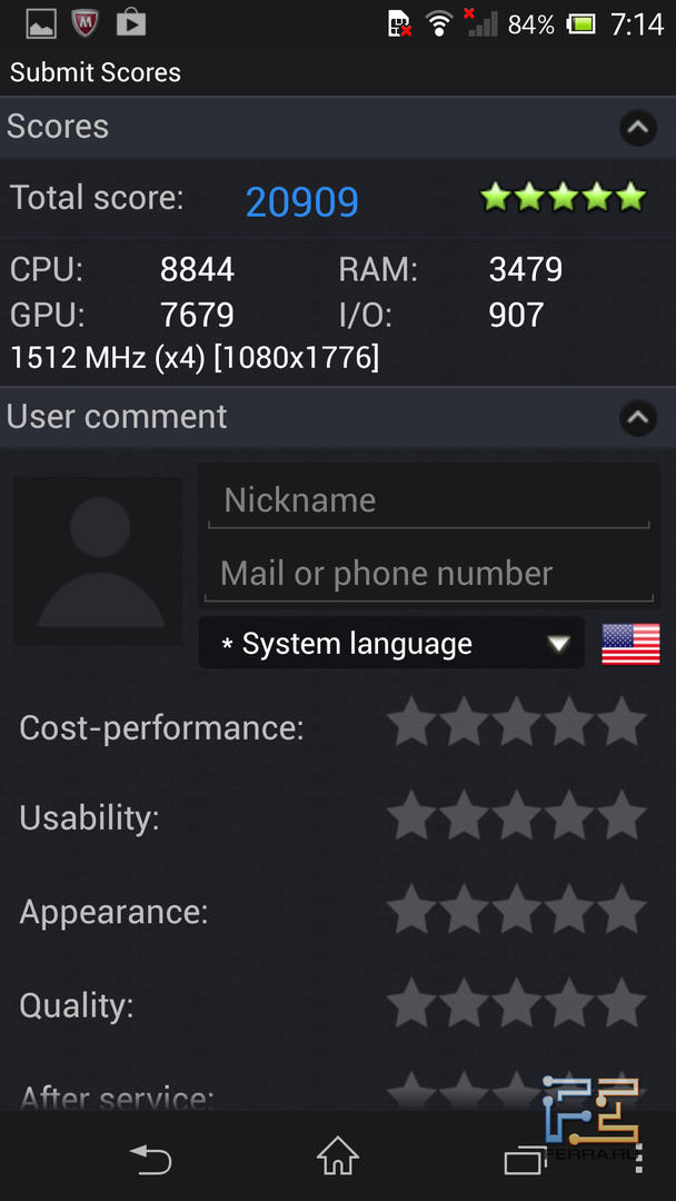 Железо смартфона имеет одну из новейших конфигураций. Модель базируется на чипе Qualcomm APQ8064 (он же Snapdragon S4 Pro), а центральный процессор содержит четыре вычислительных ядра. Тактовая частота каждого из них осталась прежней — 1.5 ГГц. За графику отвечает ускоритель Adreno 320. Такая мощная начинка обусловлена Full HD разрешением дисплея, его запросы будут явно требовательными. Значительная часть аппаратных ресурсов тратится на обеспечение нормальной работы самых банальных вещей (экранной анимации, отображения картинок и так далее), это очевидно. Однако мы провели несколько тестов, которые показали, что и в требовательных приложениях Sony Xperia Z держится очень уверенно.