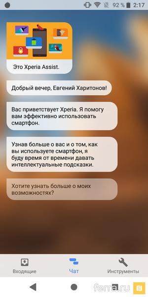 Sony, на первый взгляд, набит функциями менее плотно, но это только на первый взгляд. Да, в Xperia XZ2 нет лабиринтов меню и бездны переключателей непонятного назначения, как в Samsung, только вот среди привычных часов, калькулятора, аудио-видеоплееров и браузеров есть и возможность отсканировать своё лицо подробнейшим образом (Sony обещают договориться с игроделами, чтобы в будущем вы могли выбирать свою внешность из 3D-модели Xperia для действующих лиц в играх), и активация дополненной реальности (мультяшки будут бегать в кадре камеры по столам/кроватям, как живые), и возможность дорисовать себе парик или усы в прямом эфире. Есть даже глуповатый цифровой помощник (до «Алисы» ещё очень далеко) и навязчивый антивирус AVG, который регулярно просит «купи меня, тебе что, жаль денег на безопасность?».