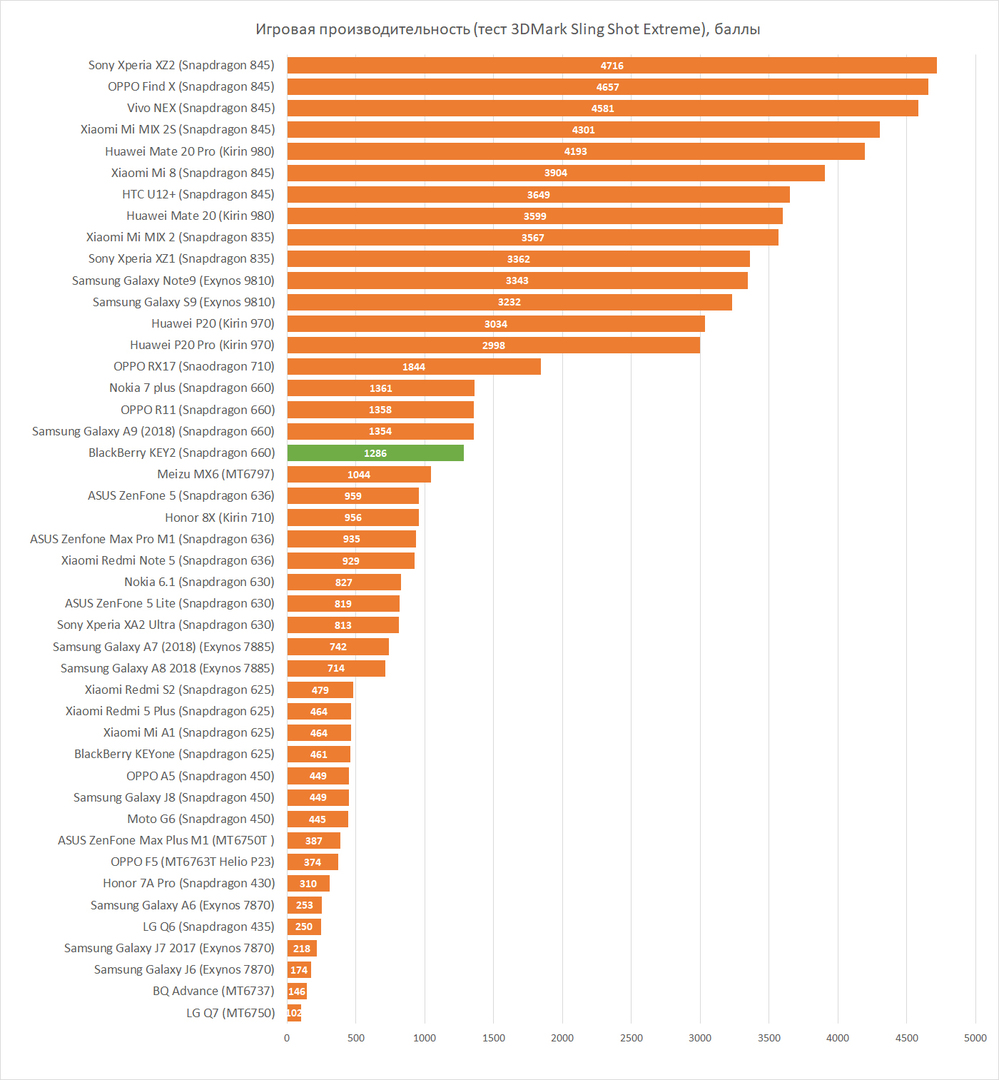 Новая модель получила гораздо более производительный процессор, нежели был установлен в KEYone. Теперь это восьмиядерный Qualcomm SDM660 Snapdragon 660. С одной стороны, это очень бодрое железо. С другой — такую ставят в смартфоны с ценой порядка 25-30 тысяч. Если вам не нужны игрушки на смартфоне, то и бог бы с ним — Snapdragon 660 справится с остальным отлично. Да и с играми справится. Другое дело, что время от времени в вашу голову будет закрадываться мысль, что вокруг ходят люди с двое более дешёвыми смартфонами Xiaomi с вдвое более быстрыми процессорами.