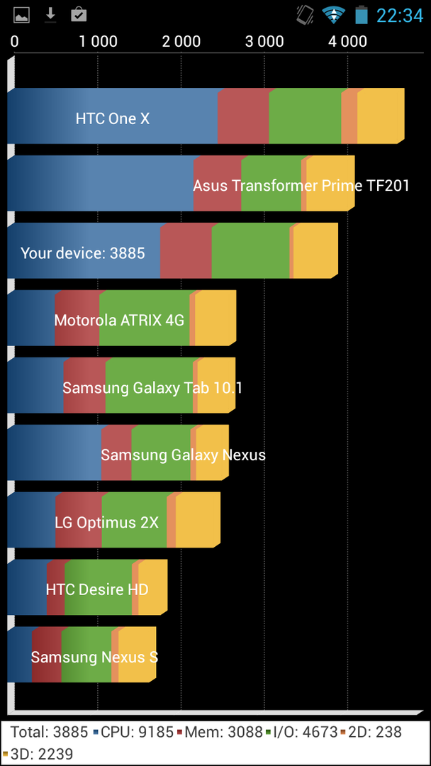 Аппаратная начинка «ледяной альфы» не демонстрирует ничего необычного: типичные для данного сегмента рынка процессор и объем памяти, и соответственно, вполне ожидаемое быстродействие. Интерфейс плавный, скорость запуска и работа самих приложений претензий не вызывает. Бенчмарки же, скриншоты которых вы видите, видимо, не слишком жалуют процессоры MediaTek, отчего «в попугаях» иногда заметны «провалы».