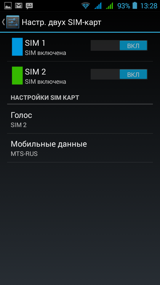 Настройка работы с двумя SIM-картами на Highscreen Omega Prime Mini SE