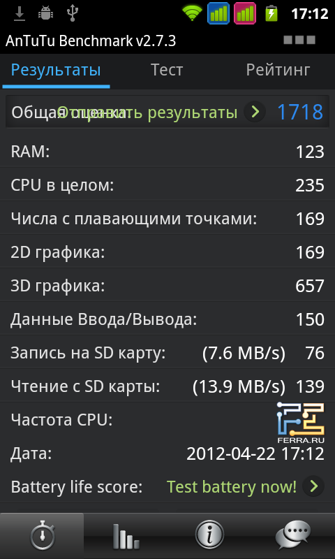 Результаты теста Quadrant на Highscreen Yummy Duo