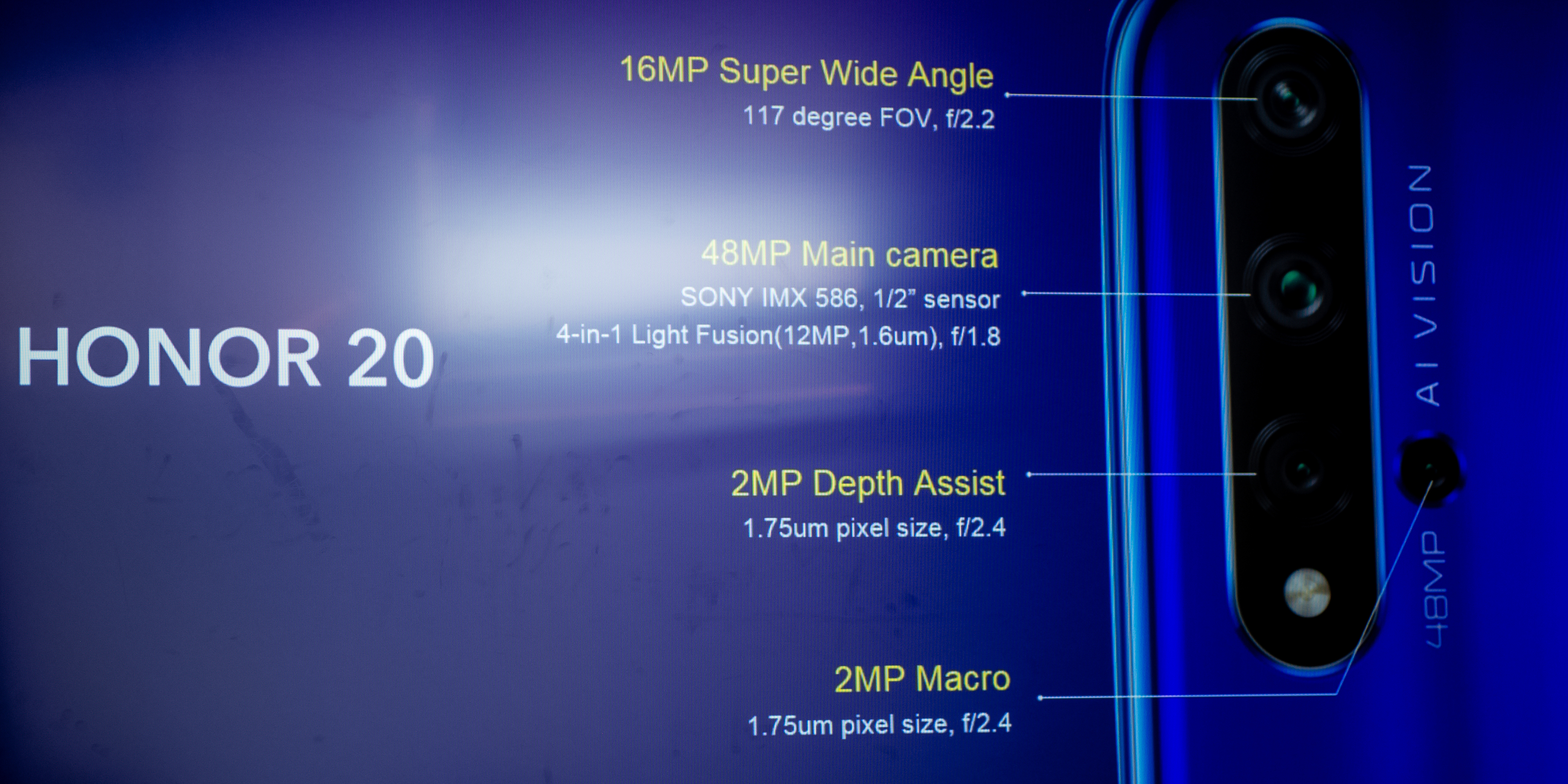 Основная тыльная камера основана на том же сенсоре Sony IMX589, который установлен в Xiaomi Mi 9, Oppo Reno 10x Zoom и ASUS ZenFone 6, но только в Honor 20 она работает «на все деньги» - не только за счёт стабилизации, но и потому что новый флагман Хонор – смартфон с лучшей оптикой («стёклышками», объективом, как угодно называйте) в камере среди всех смартфонов в мире! Больше ни в одном смартфоне в мире нет объектива с диафрагмой f/1.4!