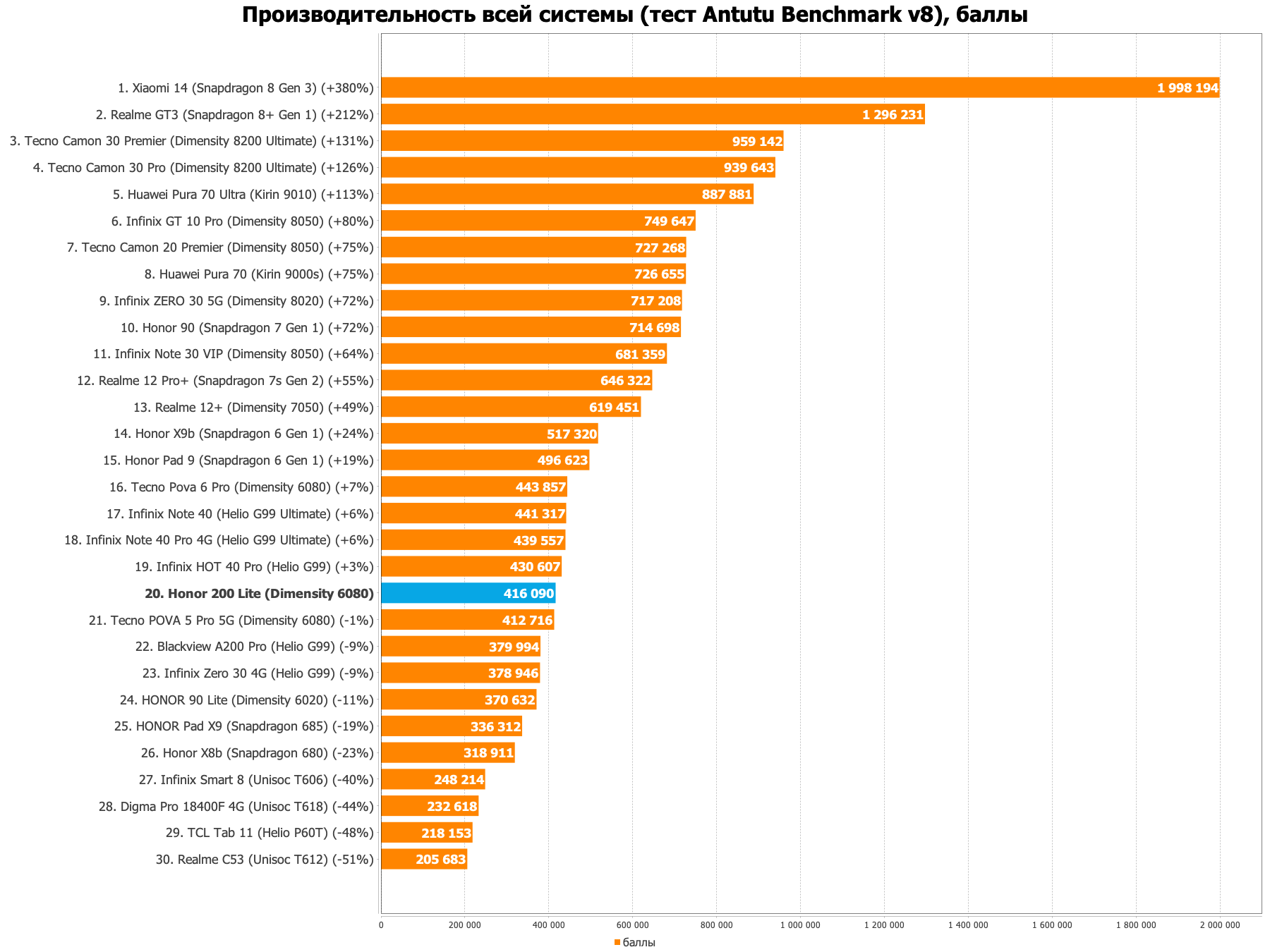 Смартфон работает на процессоре MediaTek Dimensity 6080, производительность которого плюс-минус аналогична привычным для вас MediaTek Helio G99, Qualcomm Snapdragon 750G/765G/845, Exynos 1280. С одной стороны, «А чё, более мощный процессор не могли поставить?». Вон, за 30-31 тысячу рублей из Китая даже с пошлиной можно заказать что-нибудь на Snapdragon 8s Gen 3 (это дефорсированный 8 Gen 3 до уровня 8 Gen 2). С унылой камерой, но всё же.