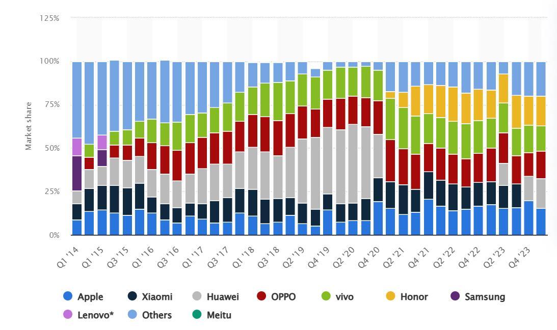 Вы можете сказать, что «Ну, это странная концепция. И что, такое покупают?». Китайцы вообще в восторге, судя по всему — вон, HONOR в тройке самых продаваемых смартфонов Китая (на начало 2024 и вовсе на первое место попал). А Samsung, Infinix и Tecno, популярные в России, почему-то не берут...
