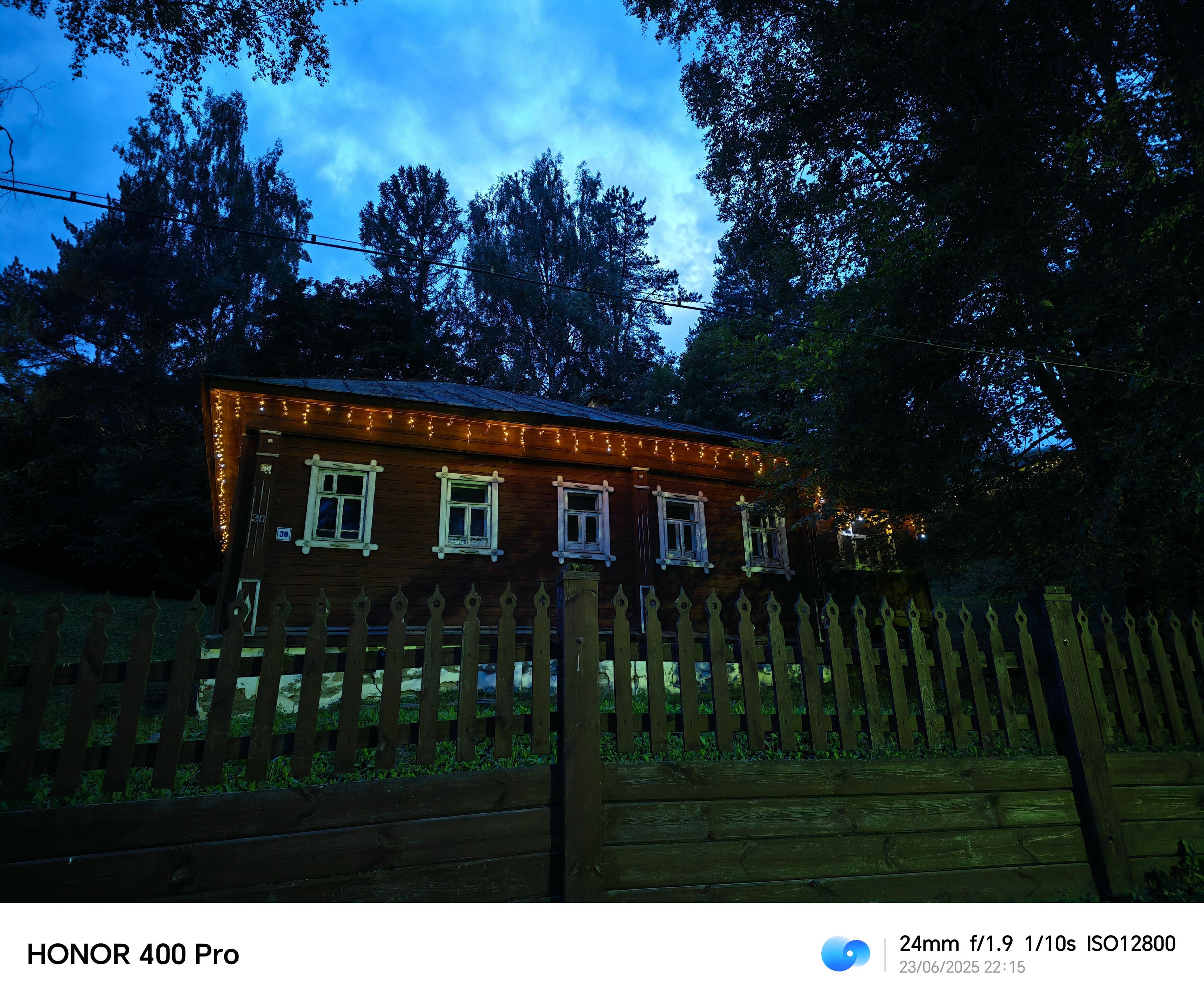 У HONOR 400 Pro есть даже специальный режим для ночной съёмки видео — разрешение падает до 1080p, частота кадров — до «кинематографичных» 24 к/с, смартфон становится гораздо более «зрячим» в темноте. Но картинку при ходьбе продолжает «колбасить», а изображение настолько тягучее, будто снимали на кнопочную Nokia на Symbian 18-летней давности.