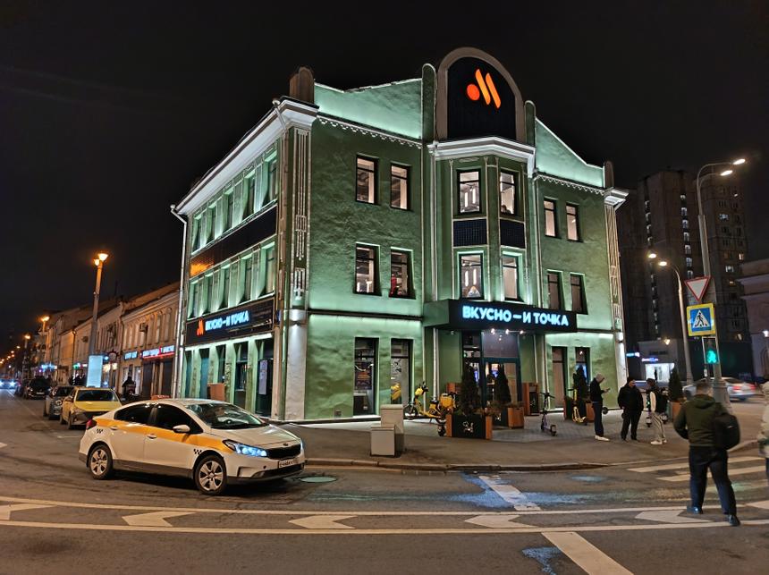 Ночью или при плохом освещении я бы перестраховывался и делал несколько кадров. Камера не всегда высветляет очень яркие участки кадра типа лампы или уличной стеллы на ночной улице, поэтому несколько снимков с близких к друг другу ракурсов — мастхэв. Да и на некоторых снимках куда-то потерялся фокус и заметна «рисовка» алгоритмами. Но глобально снимается без особых проблем.