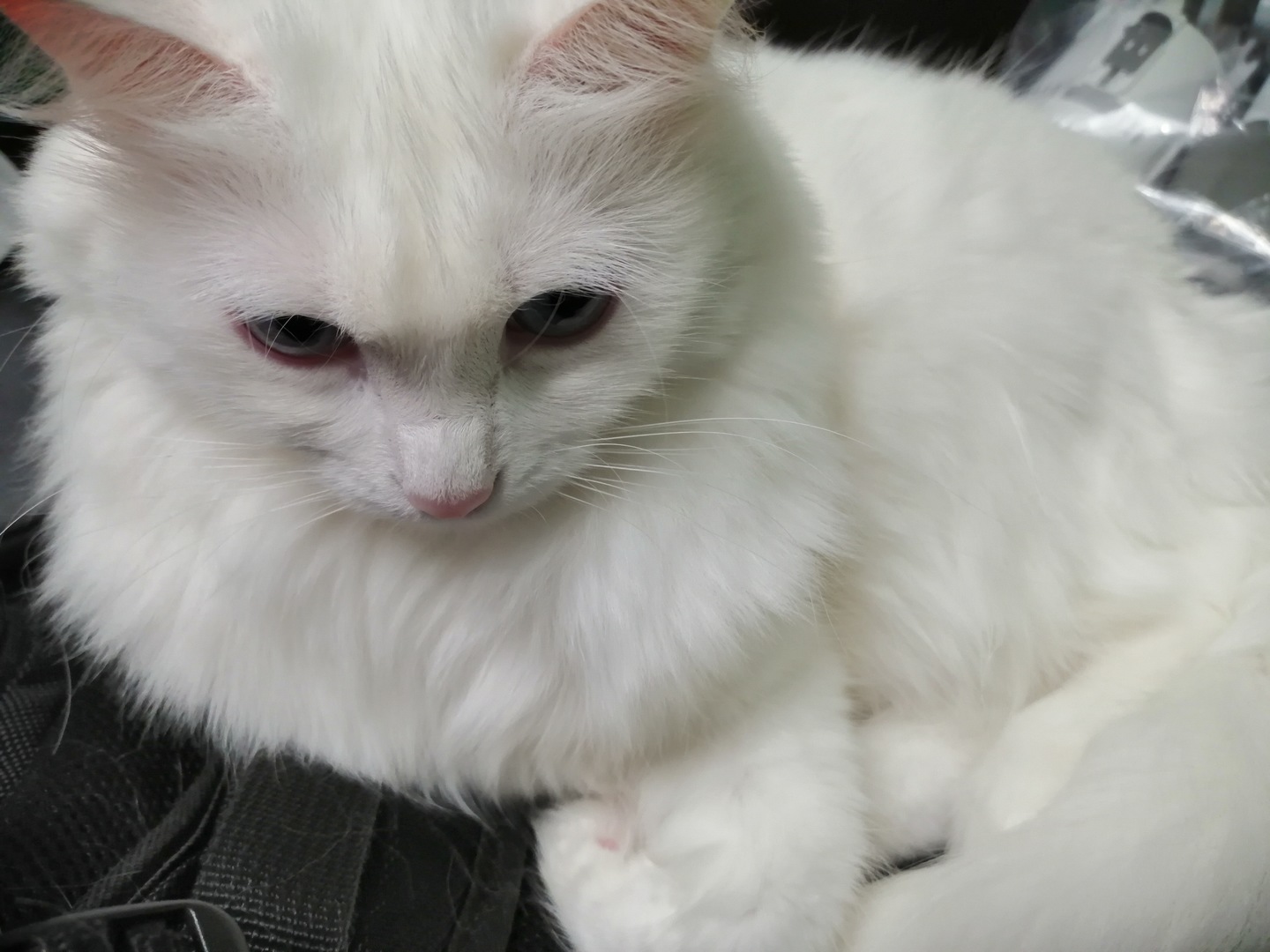 Или взять вот снимок кошки. Да, с включением искусственного интеллекта камера Honor 8X вывела на экран сообщение, что это кошка. Так-то мы были уверены, что снимаем кактус. Но разницу между снимками на самой кошке мы так и не увидели. Разве что, чёрный рюкзак, на котором она лежала, во втором случае (с включённым ИИ) лучше прорисован.