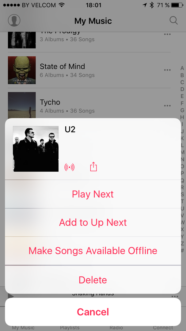 Если отключить Apple Music, оказывается, что купленные композиции не сохраняются в памяти iPhone по умолчанию. Для каждого альбома, исполнителя или плейлиста нужно обязательно отметить пункт «Make Available Offline»: чтобы музыка загрузилась в память. Для человека, который чаще всего слушаает музыку там, где интернет работает плохо или не работает вообще (в метро, в поезде, в самолете) – это удивительно бессмысленная рутина.