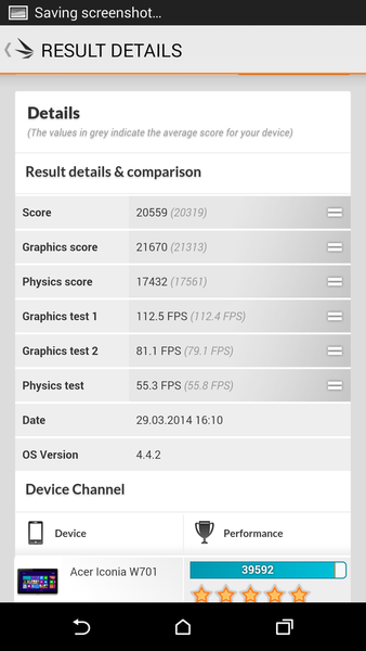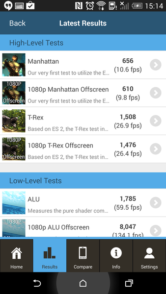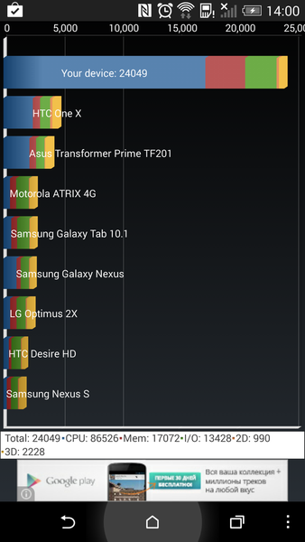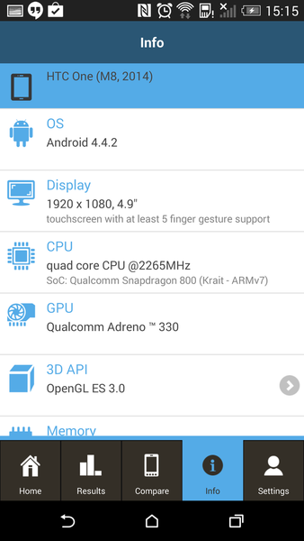 Сердце смартфона — это процессор Qualcomm Snapdragon 801 с четырьмя ядрами и графикой Adreno 330. Стоит отметить, что в HTC One (M8) используется две версии процессора в зависимости от географии. Нам, как и другим европейцам, повезло меньше: поставляемые в Россию смартфоны оснащаются процессорами с тактовой частотой 2,3 ГГц, в то время как более быстрые 2,5-гигагерцовые азиатские устройства рвут всех конкурентов по производительности. Европейская версия проявляет себя чуть хуже в синтетических тестах, однако при повседневном использовании никакой разницы вы не заметите.