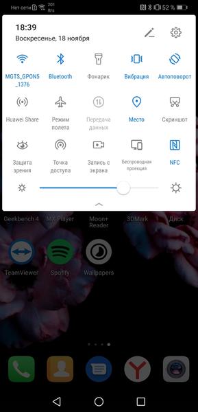 У Mate 20 Pro это теперь широкая полоса с большой буквы «Ша». Настолько широкая, что по бокам от нее почти не осталось места для значков уведомлений. Точнее, осталось, но только для системных, а вот иконки нотификаций от приложений уже попросту не влезают. Из этого делаем вывод, что Mate 20 Pro — смартфон для одиноких людей, которым, как и известному Полковнику, никто не пишет. Если отбросить шутки в сторону, то оказывается, что так много места «чёлка» занимает потому, что умеет распознавать ваше лицо — быстро, качество, днём и ночью, в шапке и без и т.д. Так что эта назойливая полоса — неизбежный компромисс, если вы хотите забыть про разблокировку смартфона с помощью сканера отпечатка пальца.