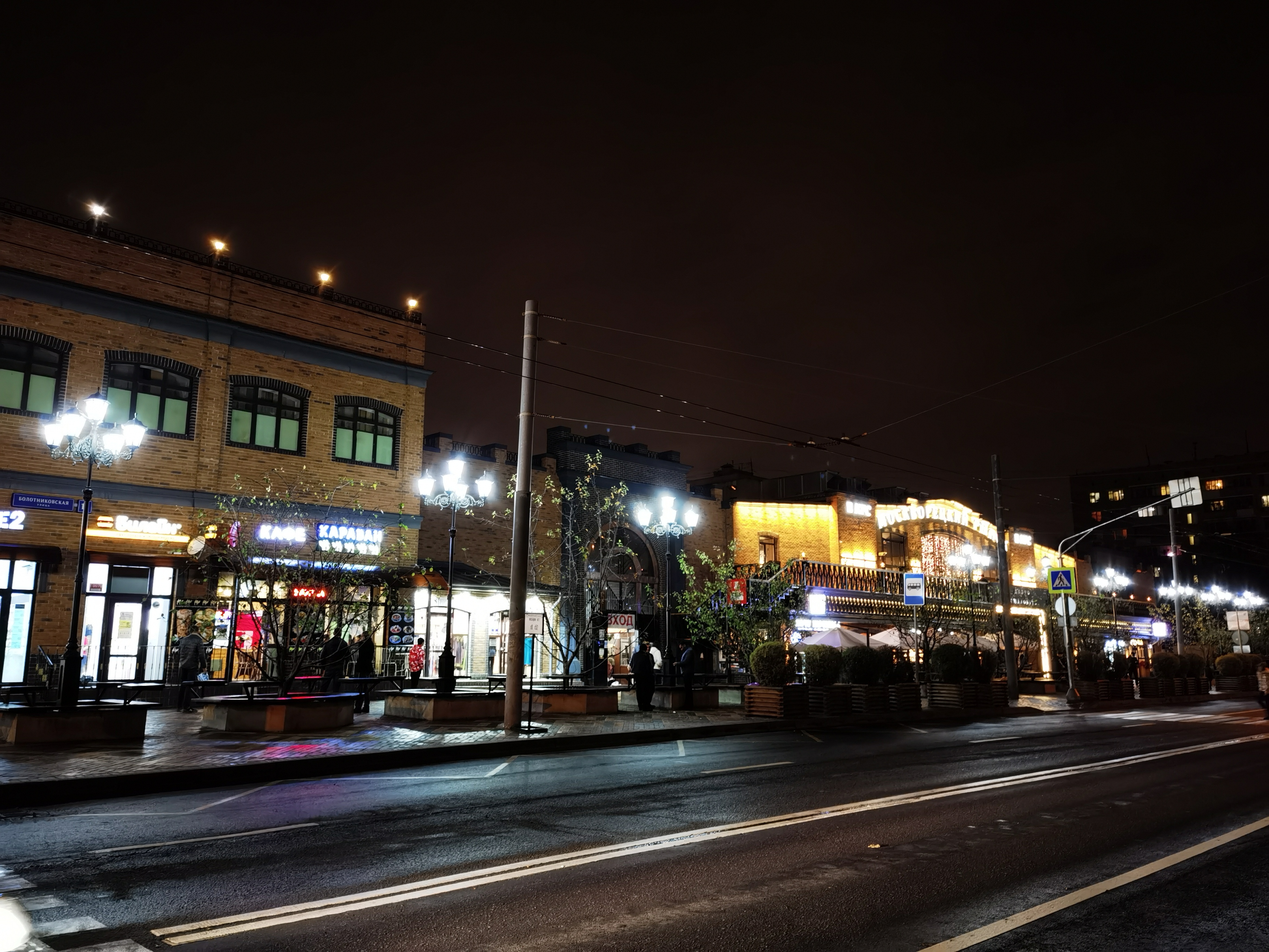 - Если вы фотографируете ночью тёмное здание + яркие вывески на нём. В обычном режиме вывески у вас будут пересвечены, либо здание будет чёрное и без очертаний. Ночной режим позволяет сделать «гораздо лучше с любой стороны».