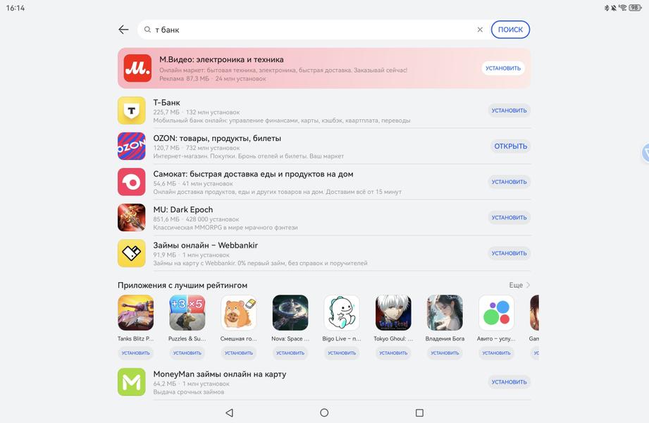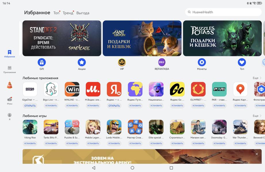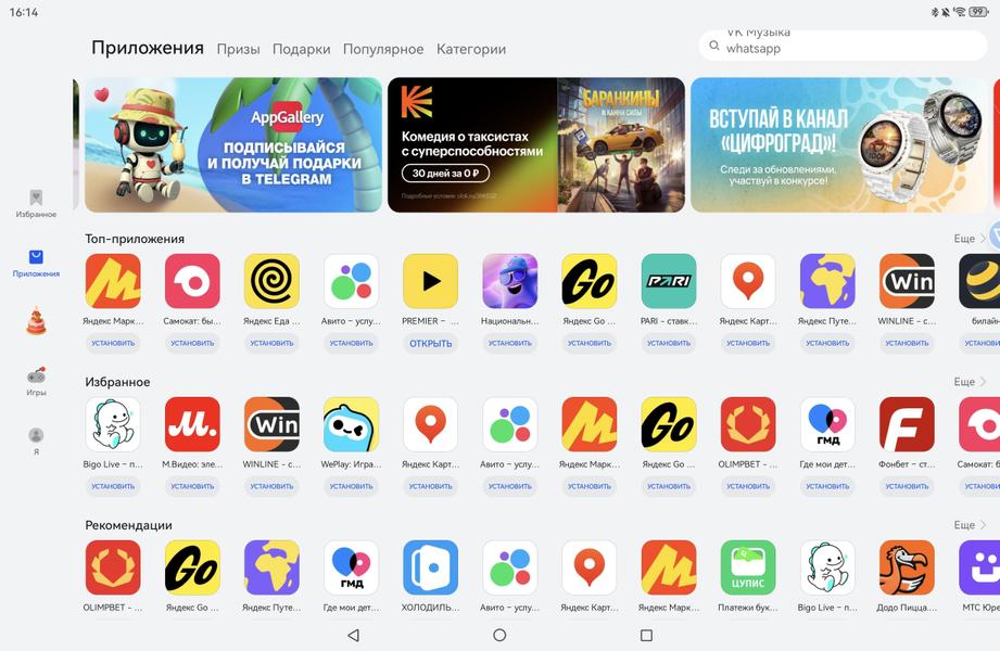 Наконец, для установки дополнительных приложений на планшете есть магазин HUAWEI AppGallery. Причём поиск в AppGallery осуществляется и по сторонним магазинам приложений — чего нет в самом AppGallery то предложат установить из внешних источников.