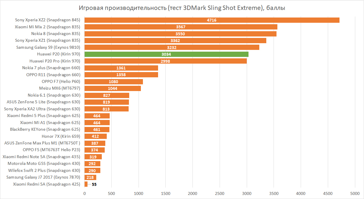 О процессоре есть две новости — хорошая и плохая. И начнём мы с хорошей: он тот же, что и у топовой модели Huawei P20 Pro. А плохая заключается в том, что этот процессор — Kirin 970, то есть тот же самый, что был и в прошлогодних флагманах Huawei Mate 10 и даже в Honor View 10. Нет, в целом это всё еще скорее флагманский процессор, до которого смартфонам-середнячкам пока еще далеко. С другой стороны, вы можете чувствовать себя немного ущемлённо на фоне тех, кто предпочёл Samsung S9 или Sony Xperia XZ2, так как их производители не поленились завезти свежие чипы, не намного более крутые в работе с приложениями, но уже сейчас гораздо более бодрые в играх.