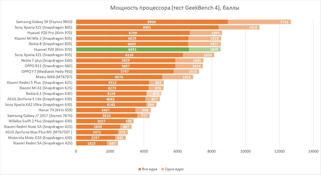 У Huawei P20 очень ёмкий аккумулятор в сравнении с тем же Samsung Galaxy S9 или Sony Xperia Z2, поэтому он легко опережает по автономности S9 уже хотя бы за счёт того, что у P20 меньше разрешение дисплея. Но Sony Xperia Z2 с его более экономичным и современным процессором всё же удаётся проработать от одного заряда дольше.