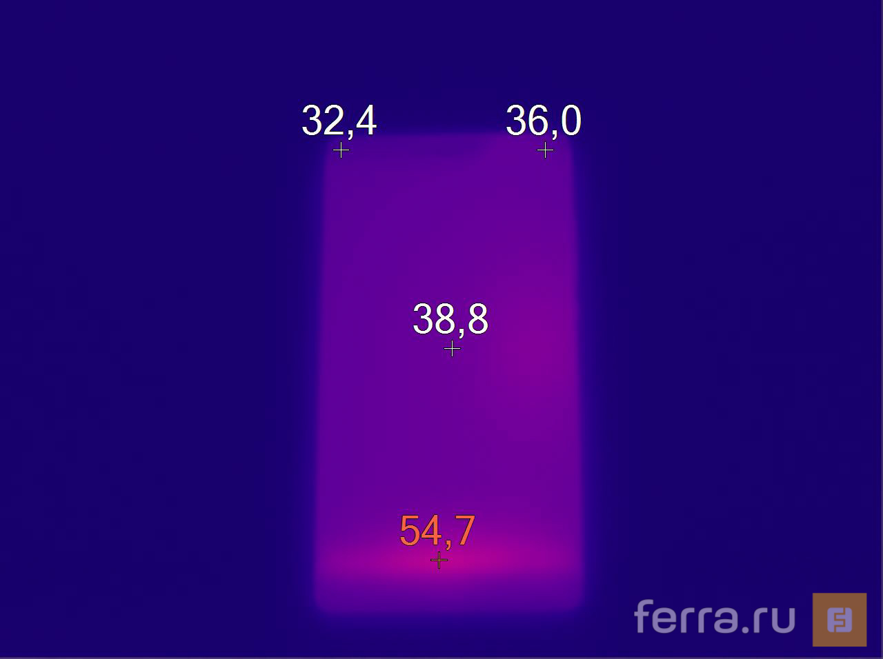 Нижняя часть передней панели P8 разогрелась в играх до 55 градусов по Цельсию, и это довольно много.