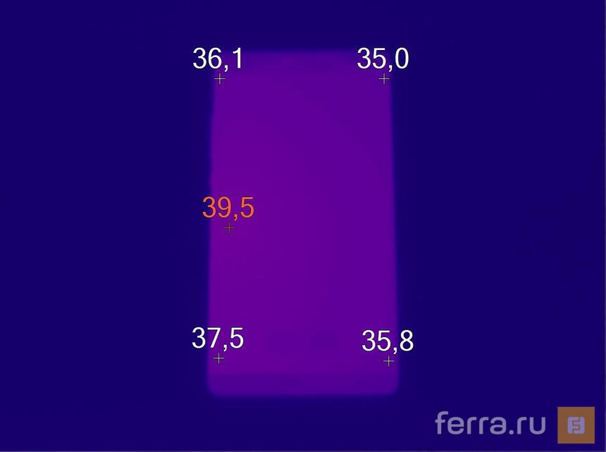 Как мы уже отметили, процессор Kirin 930 не склонен к перегреву. Однако в сверхтонком смартфоне ему приходится не сладко, что и показывает температура корпуса смартфона.