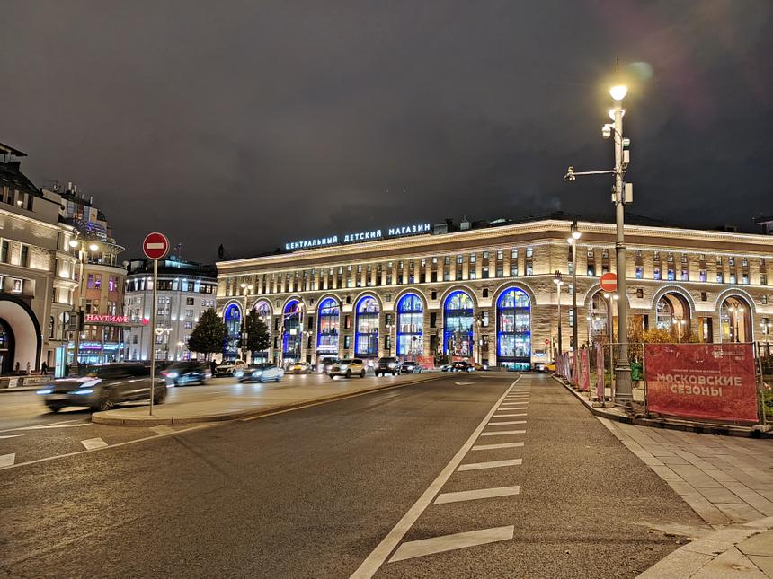 Что касается съёмки в ночное время, то тут без неожиданностей. Телефон долго «ловит» движущиеся объекты (даже на небольшой скорости) и по итогу всё равно смазывает их. Если в кадре нет крупных светящихся вывесок — снимок получится хорошим и его не будет стыдно показать друзьям.