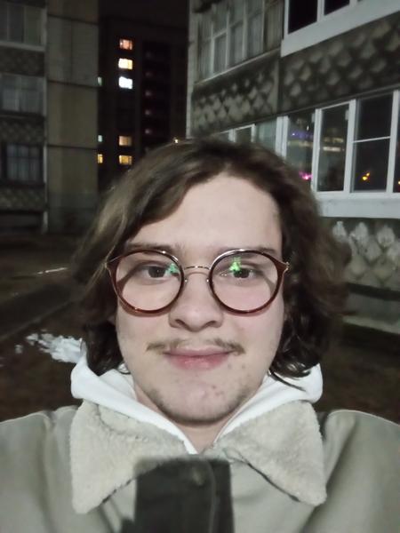 При недостаточном освещении качество начинает проседать: пропадает общая чёткость и сливаются тёмные участки снимка. У меня таким вот образом в одно целое объединились волосы за ушами. Ну а про ночные попытки сделать селфи и говорить ничего не надо. Результат съёмки под уличной лампой похож на рисунок акварелью, такое в соцсети я бы выкладывать не стал.