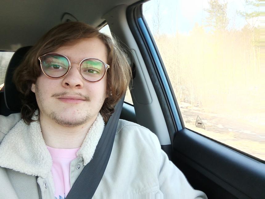 В селфи мы пойдем тоже от лучшего к худшему. Дневные статичные снимки получаются неплохо, а вот фотографии в таких же условиях, но с движущимся фоном, уже начинают разочаровывать. Стекло возле меня было абсолютно чистое, но вместо хотя бы смазанного из-за езды леса я получил какое-то желтое пятно.