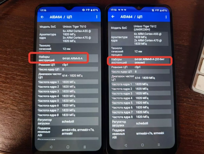 | Процессор | MediaTek Helio A22, 12 нм, 4 ядра (Cortex-A53, 2,0 ГГц) | Unisoc T612, 12 нм, 8 ядер (2хCortex A75, 1,8 ГГц + 6хCortex A55, 1,8 ГГц) |