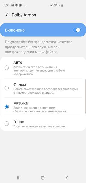 В Самсунге можно не лезть ни в какие настройки — чистый и уравновешенный звук с большим запасом громкости у него есть сразу. Переключать настройку с "Авто" на "Музыка" в настройках Dolby Atmos есть смысл, если вам хочется более брутального и сбитого звучания (например, чтобы расслышать, как напрягаются барабанщики в тяжёлых партиях с огромным количеством ударов). А если переключить UHQ Upscaler в режиме "повышение разрядности и частоты", Galaxy S10+ ещё и избавит древние песни от части шумов и дефектов звукозаписи. Кайф!