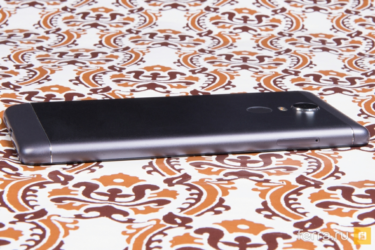 С этим у K6 Note всё очень здорово — бюджетной толщины рамки по бокам от дисплея замаскированы чёрной лицевой панелью и изогнутым защитным стеклом, а клавиши громкости и питания расположены именно там, где им подобает быть. Да и элементы управления под экраном радуют, потому что у многих конкурентов на этом же месте расположено очаровательное ничто, а клавиши теснятся на экране и съедают драгоценную площадь дисплея. Подсветки у клавиш нет, но серебристую краску на них прекрасно видно и днём, и вечером. Сканер отпечатков качественный, хлопот не доставляет.