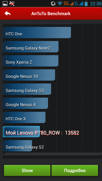Результаты тестирования Lenovo P780 в Relative Benchmark