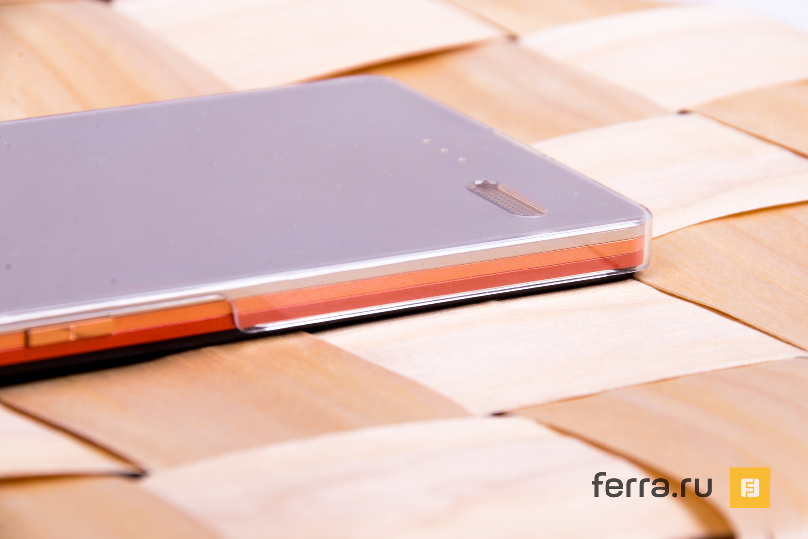 Точно не буду первым, кто сравнит Vibe X2 со слоёным пирогом, но лучшей аналогии не придумать. Боковые грани состоят из четырёх частей разных цветов, и к нам попал, по-моему, самый яркий вариант — чёрно-оранжево-красно-золотой. Кстати, к ним можно добавить еще один слой — в комплекте поставляется прозрачный чехол на заднюю панель. Смартфон и просто очень хорош собой, и понравится молодёжной аудитории, и будет выделяться среди серых невыразительных «одноклассников» на витринах магазинов.