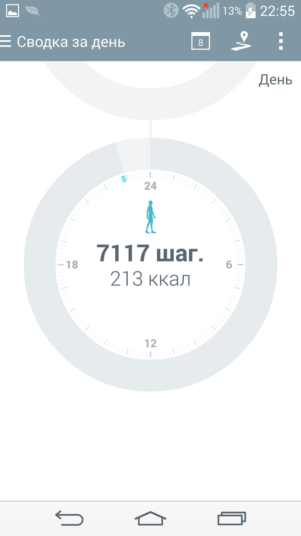 Наконец, LG G3 помогает не растолстеть в таком комфорте. Специальная предустановленная программа LG Health считает ваши шаги и оценивает, достаточно ли вы активны. Она не назойлива, но порой сам заглядываешь в отчёт, краснеешь и идёшь на улицу прогуляться. Здесь же можно записывать свои тренировки и следить за расходом энергии.