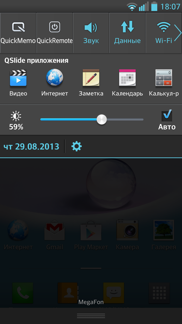 В качестве интерфейса — фирменная оболочка LG, которую автор этих строк считает наиболее удачной среди всех стандартных оболочек девайсов на Android. Во-первых, она красива.