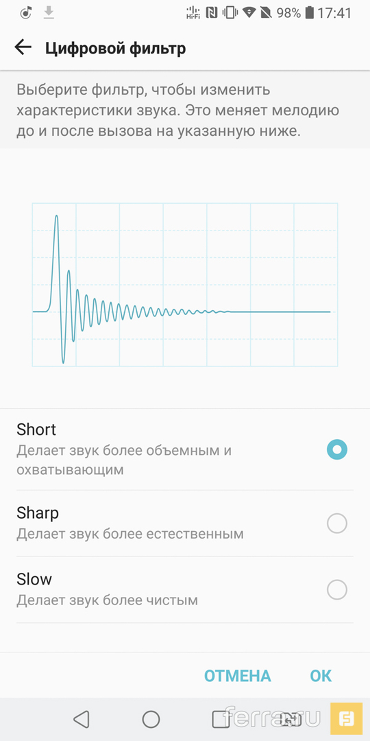 Вообще, звук в G6 и V30+ очень похож (ещё бы — в обоих моделях стоит ESS Sabre ES9218, только в V30 модификация ES9218+, а в G6 — ES9218P. Не спрашивайте, в чём разница — не знаю). Но в G6 это железо либо работает, либо деактивировано, а в V30+ его можно тонко настроить. И я не о регулировке баланса между левым и правым динамиками, а о пяти предустановках эквалайзера (на любителя) и, что гораздо важнее, цифровых фильтрах. Три предустановки, и ни одна из них не уродует звук. Выбирать можно между объёмным звуком (не «колхозным», как в Galaxy или Huawei, а ненавязчивым, будто таким был изначальный мастеринг записи), нейтральным (если вас утомляют «дискотечные» наплывы и переходы, но хочется, чтобы музыка всё-таки чуть обволакивала) и «медленным» (сжатая предустановка, когда средние частоты плывут в уши «прямотоком», без расширений и ёрзанья по сцене). Точный инструмент, аудиофилы оценят!