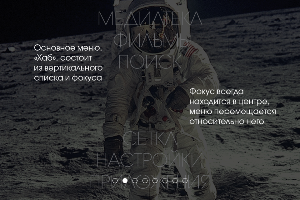 После того, как мы ввели пароль и изучили инструкцию, перед нами предстаёт вертикальное меню с фокусом на одном центральном элементе. Кстати, очень удачный дизайнерский ход. Еще один приятный момент – высокая скорость работы. Даже на iPhone 4S приложение работает быстро и плавно.