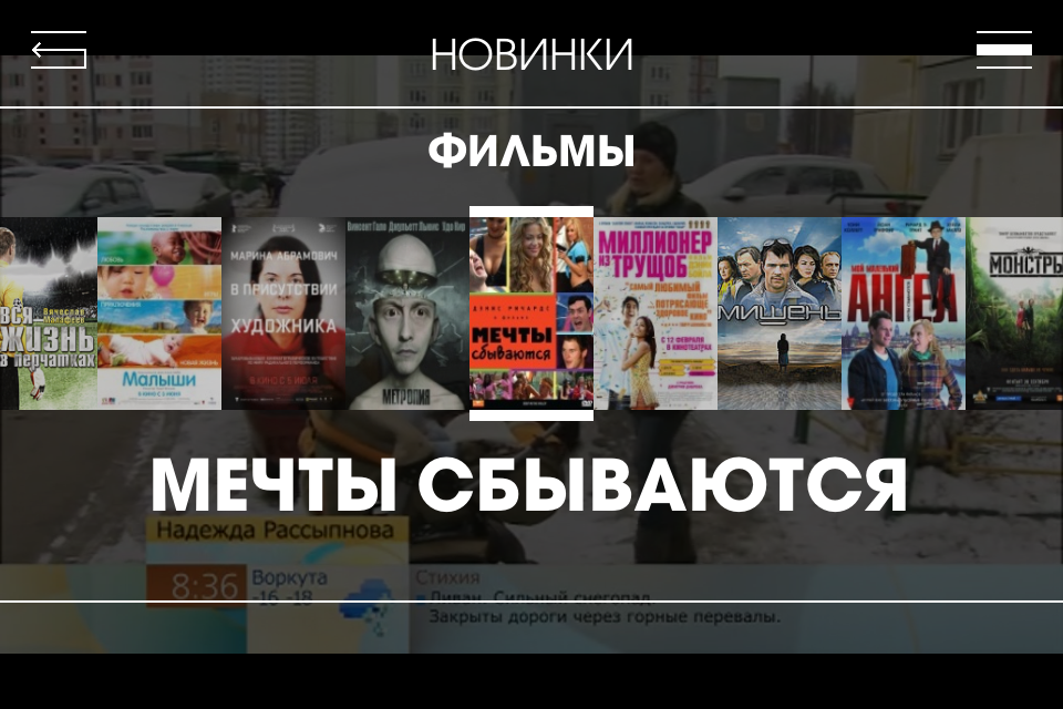 Кроме телепередач, в приложении присутствует и видео по запросу. Так называемое, video on demand, с которым хорошо знакомы жители США и ряда европейских стран. Это фильмы и мультфильмы, которые также можно смотреть через приложение, но уже за дополнительную плату. Такая же функциональность есть и на сайте, разумеется. Уже сейчас есть много популярных фильмов и мультиков, к тому же их база постоянно пополняется.