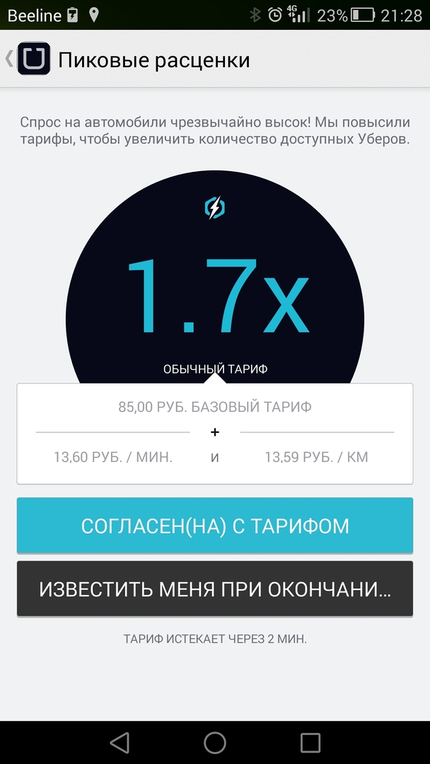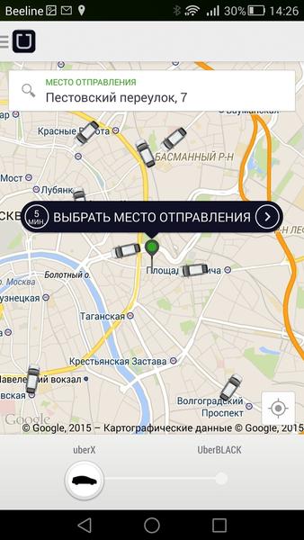 Uber – тоже не такси, а служба подачи машин с водителем. Цена здесь складывается из стоимости посадки, а также платы за каждую минуту и за каждый километр. Сперва в России был только Uber BLACK – вариант с представительскими машинами, но прошедшей осенью запустился и «народный» Uber, который мы и будем рассматривать.