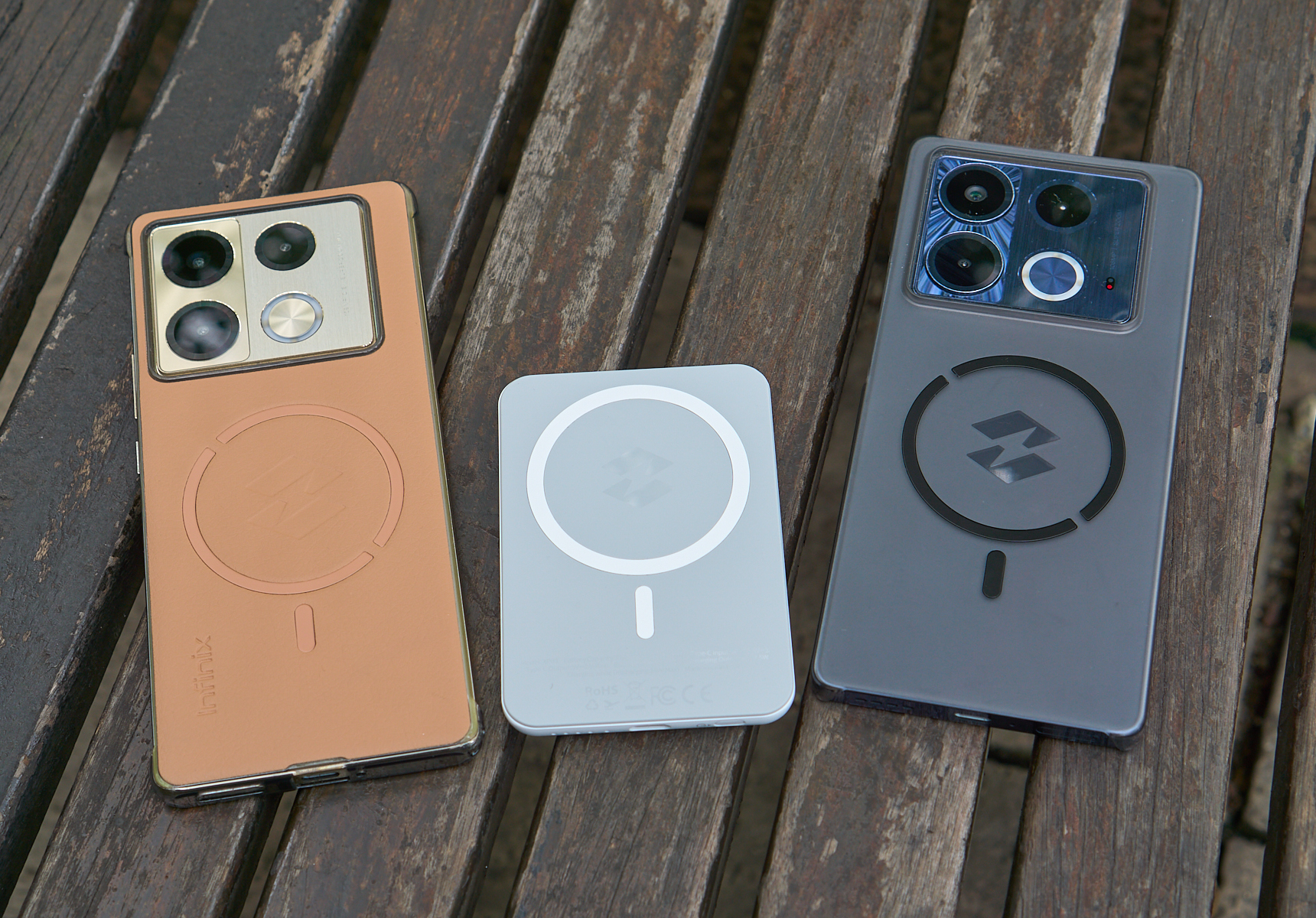 Вообще, бампер (вместо обычного силиконового чехла) здесь нужен только для крепления Magcharge — фирменного пауэрбанка от Infinix, обеспечивающего беспроводную зарядку 18 Вт и магнитное крепление как у айфона (с айфоном он тоже работает, кстати). Магниты расположены именно в бамперах, а не в корпусах телефонов.