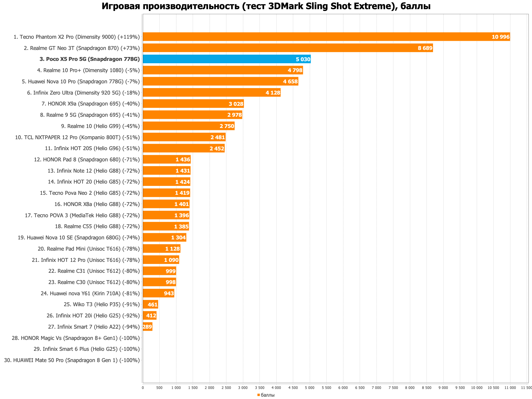 Poco X5 Pro 5G построен на SoC Qualcomm Snapdragon 778G, где CPU по производительности плюс-минус аналогичен Snapdragon 870G (одноядерная производительность ниже, а многоядерная — выше). GPU уже будет в два раза слабее, но тут смартфон выступает на равных с Realme 10 Pro+, который, правда, на MediaTek.
