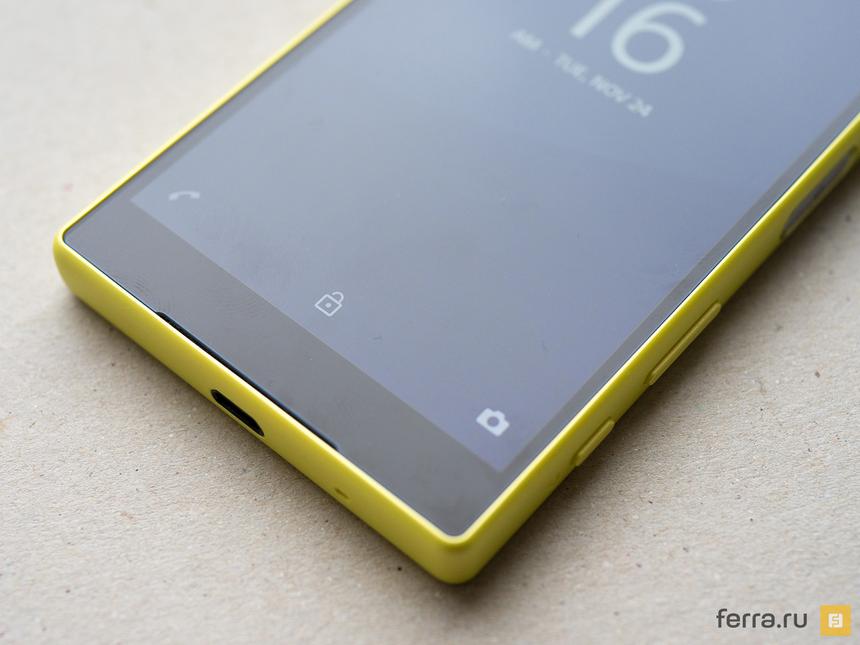На желтом корпусе следы от пальцев совершенно незаметны, равно как на белом и на коралловом, а вот черная модель закономерно оказалась более маркой. В толщину корпус Z5 Compact чуть-чуть больше, чем у Z3 Compact – разница составляет 0,3 мм, что совсем незаметно на глаз.