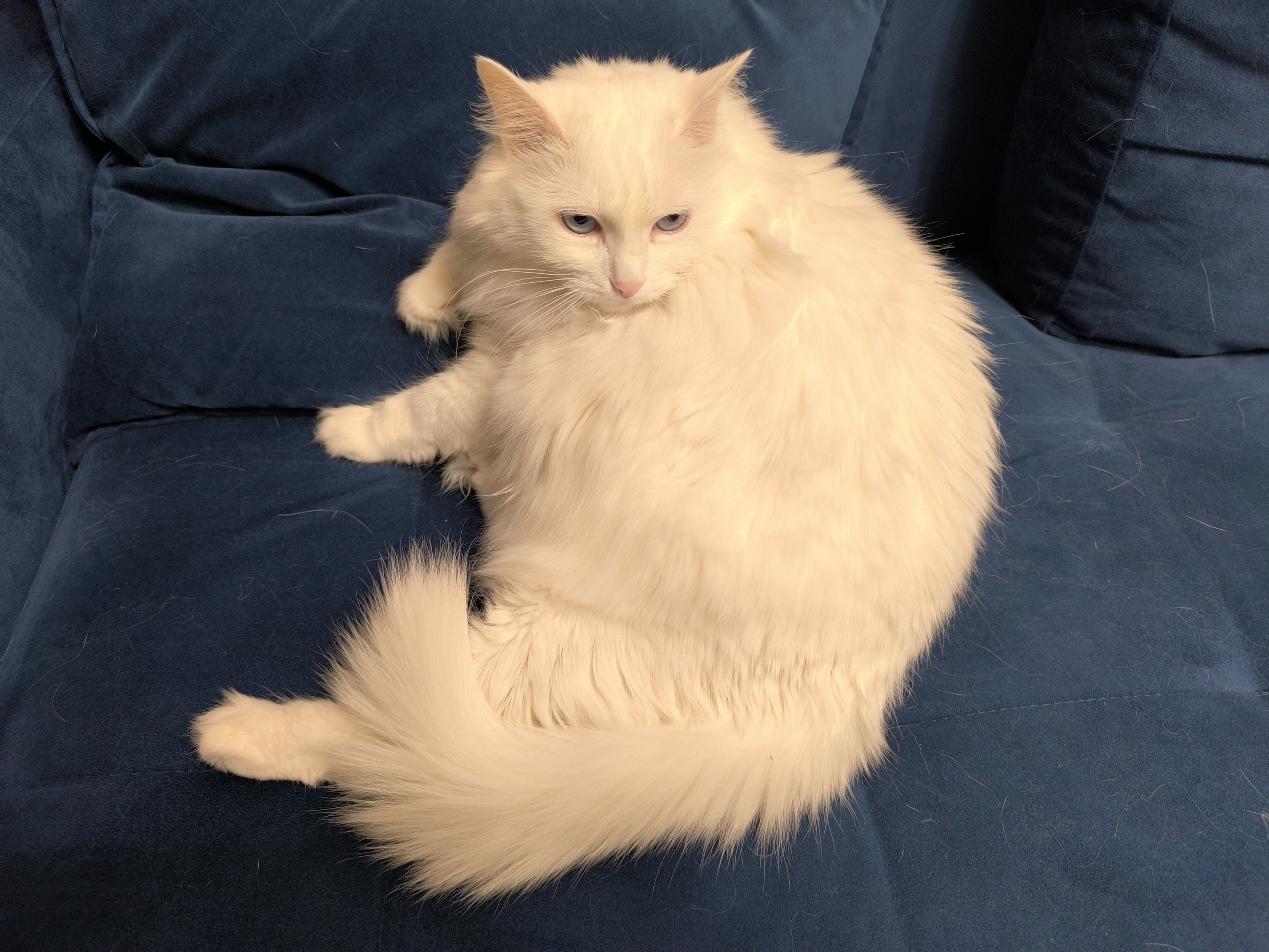 Нет, кошку никто не обливал краской для волос, как может показаться, когда посмотрите на фотографию с Xiaomi Redmi Note 13 Pro+ — кошка белая, что и показал Realme 12 Pro+.
