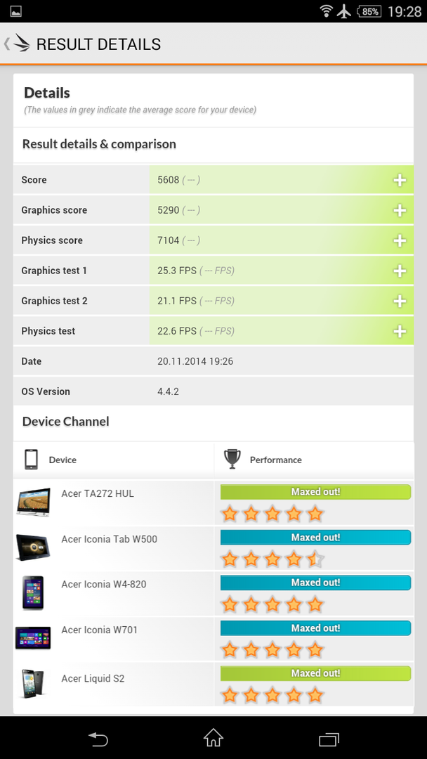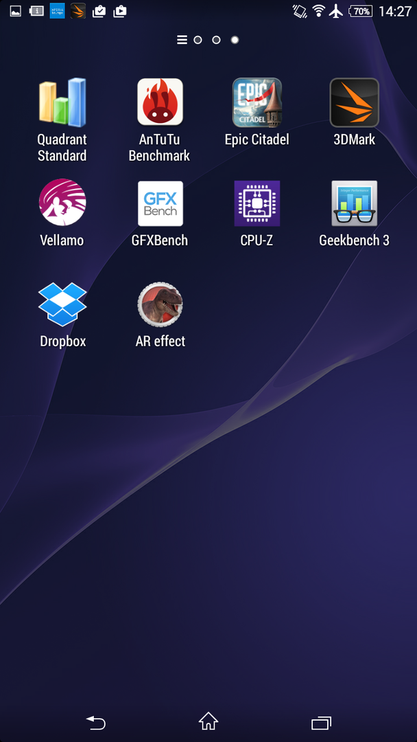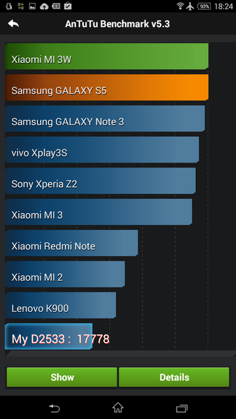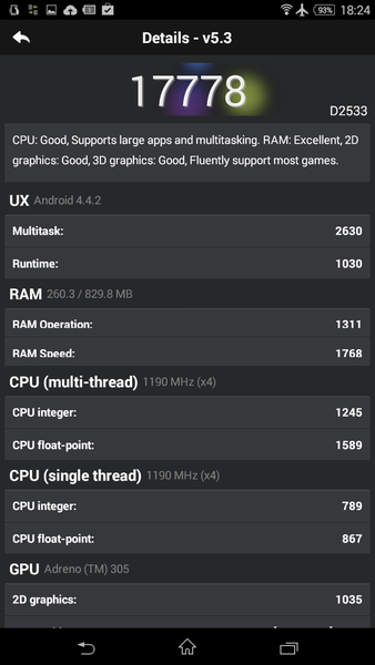 Возможности «железа» позволяют Sony Xperia C3 справляться с поставленными задачами, но при этом явно не делают его звездой AnTuTu и Vellamo. Это вполне естественно для такого середнячка. Итак, на борту установлен экономичный четырехъядерный процессор от Qualcomm с заниженной частотой 1,2 ГГц, оборудованный столь же «заниженной» графикой Adreno 305. Впрочем, для freemium-платформеров и казуалок ее достаточно с лихвой, не говоря уже о воспроизведении видео. Конечно, мы провели несколько тестов, которые полностью подтверждают все вышесказанное.