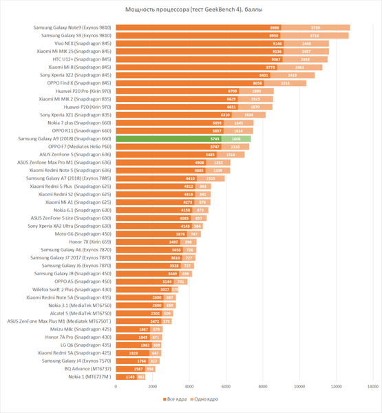 Это, правда, не значит, что не существует смартфонов дешевле с чуть более бодрым железом, но таково уж современное положение рынка, где более известные бренды пока всё еще могут позволить себе почивать на лаврах и не пытаться выделиться самым крутым железом в самом недорогом смартфоне. Тем не менее, с Samsung Galaxy A9 вряд ли вы будете чувствовать недостаток мощности в ближайшее время.