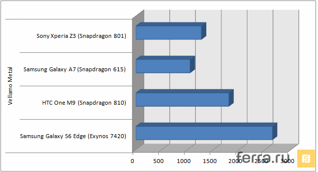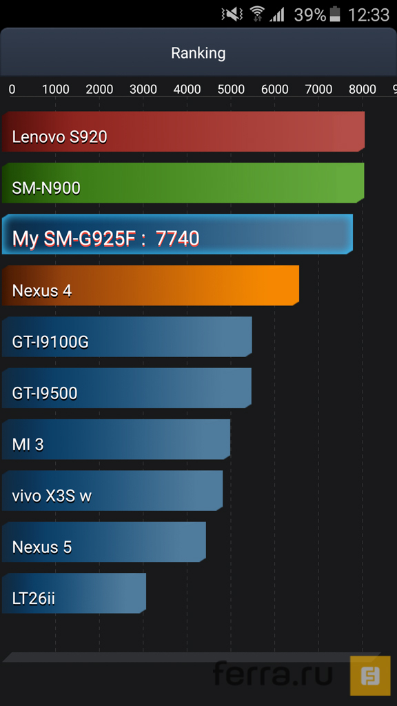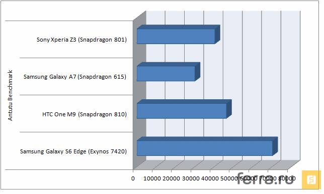 Плавность работы интерфейса и программ в Samsung Galaxy S6 edge достойна самой высокой оценки. Никаких проблем с производительностью в играх или приложениях мы не обнаружили. Переключение между запущенными приложениями любой сложности происходит очень быстро — не последнюю роль в этом играет сверхбыстрый накопитель UFS 2.0, ради которого, по словам Samsung, пришлось даже отказаться от «слабого звена» в виде подключаемой micro SD.