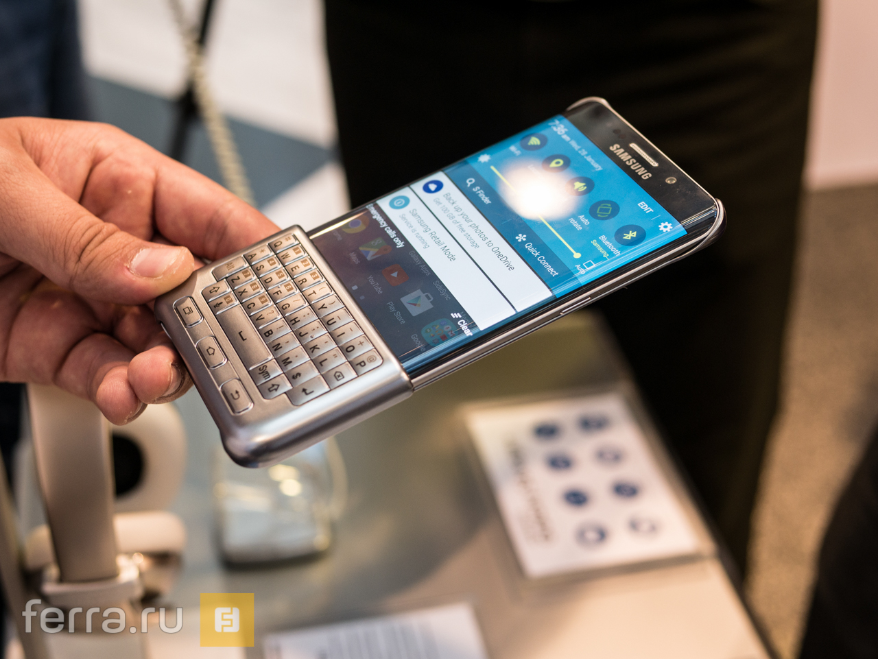 Если, конечно, на edge+ не будет нахлобучен аксессуар в виде qwerty-клавиатуры, над которым незадолго до анонса потешались любители комментировать утечки о новых гаджетах. Как и ожидалось, ничего экстраординарного в этой клавиатуре нет, а сам алгоритм набора текста предельно прост и напоминает работу с экраном в перчатках – физические клавиши отправляют команды тачскрину, а тот печатает соответствующие символы. Разве что интерфейс приспосабливается к ограниченной площади дисплея.
