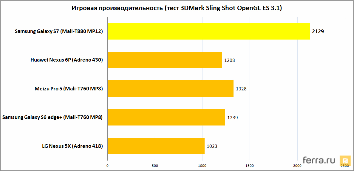 В областе графики у Samsung, как водится, дела идут чуть хуже, поэтому за игровую производительность отдувается топовый видеоускоритель ARM Mali-T880 MP12. Это лучший вариант из всех, которые можно было купить «на стороне», и он на добрые 80% мощнее видеоускорителя, привычного нам по Galaxy S6, однако по факту в производстве GPU рулил и будет рулить индивидуальный подход — Adreno 530 в топовом чипе Qualcomm и быстрее, и просто более удобен для разработки (API Vulkan и новейшая ревизия OpenGL ES 3.1 — самая «мякотка» для игр). Прошлогоднюю аппаратную платформу GT7600 из iPhone 6s новый чип Samsung обходит, но спустя почти год после выхода флагмана Apple это уже «не спортивно».