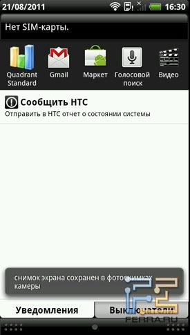 На лицевой стороне под экраном – четыре привычные для HTC кнопки: домой, меню, назад и поиск. Все они сенсорные, с приятной светодиодной подсветкой. Над экраном – голосовой динамик и объектив фронтальной камеры, которая, конечно, работает только в 2D-режиме и задействуется для видеотелефонии и приложения «Зеркало».