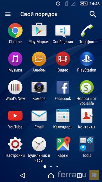 Фирменная «звонилка», календарь, аудио-видео приложения и клавиатура — вот почти полный список отличий в интерфейсе системы от привычного Android Lollipop. Стандартный набор для того, чтобы фотографии фотографировались, музыка играла и кино показывалось, дополнен клиентом Facebook, распознавалкой музыки TrackID и парой новостных агрегаторов — как для любителей следить за шоу-бизнесом и модой, так и для суровых ценителей политических и технических новостей.