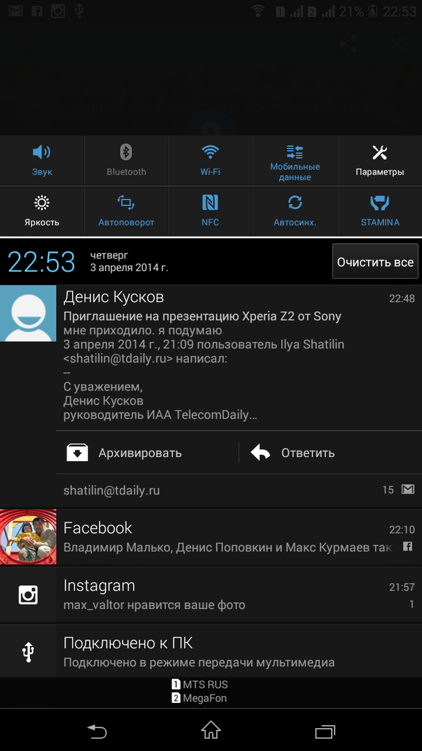 Кстати, важно отметить и специальную программную доработку интерфейса: верхняя «шторка» Android может быть вызвана двойным нажатием клавиши Home, при этом она отображается в нижней части экрана. Отличное решение, чтобы не нужно было тянуться ради того, чтобы просмотреть уведомления.