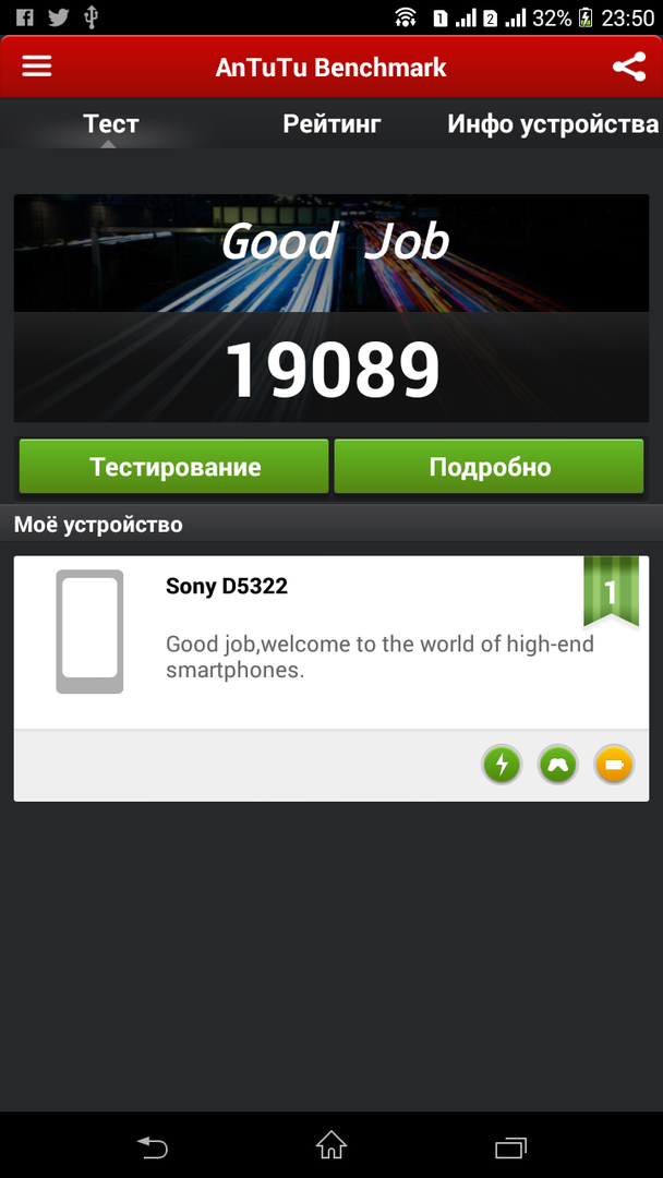 Тем не менее, за счёт современного, хотя и бюджетного, графического ядра T2 Ultra можно использовать и в не очень навороченных играх, а в бенчмарках смартфон показывает весьма приличные результаты, например, более 19000 «попугаев» Antutu.